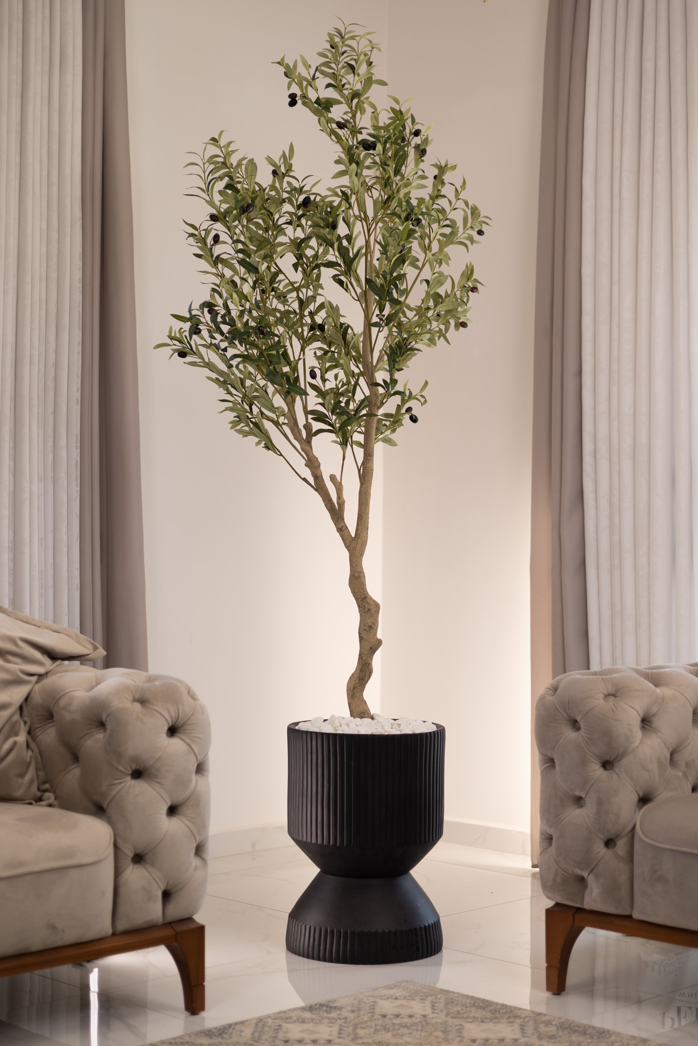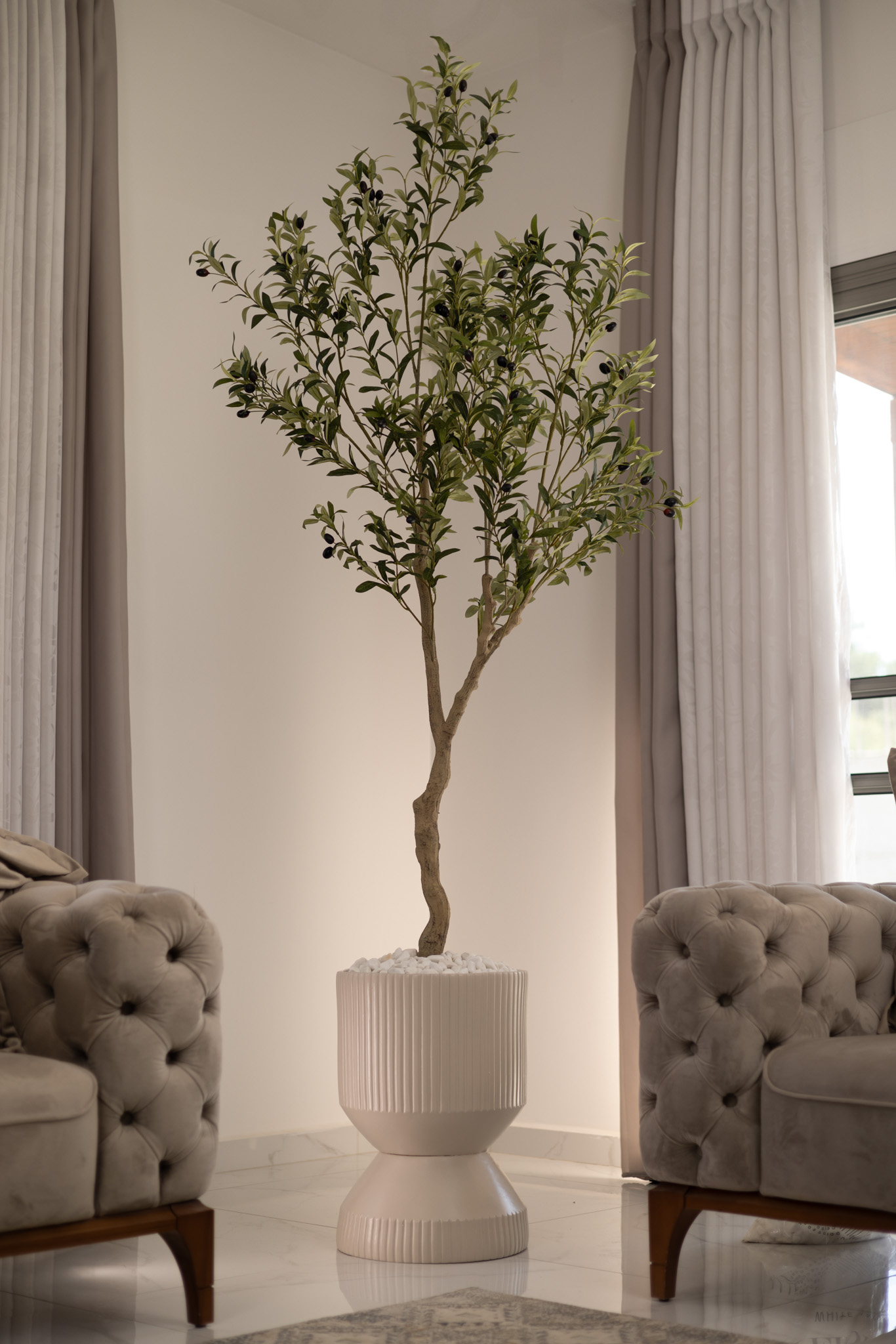 כד Elegance 70 בשילוב עץ זית מלאכותי גדול